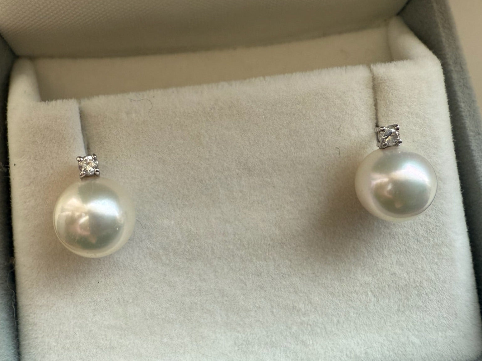 Akoya Pearl Stud Earrings 8.5 18k w/diamond